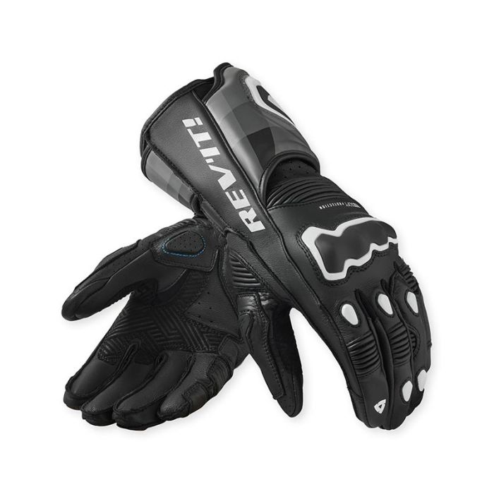 Guanti moto pelle racing Rev'it Quantum 3 Nero Bianco
