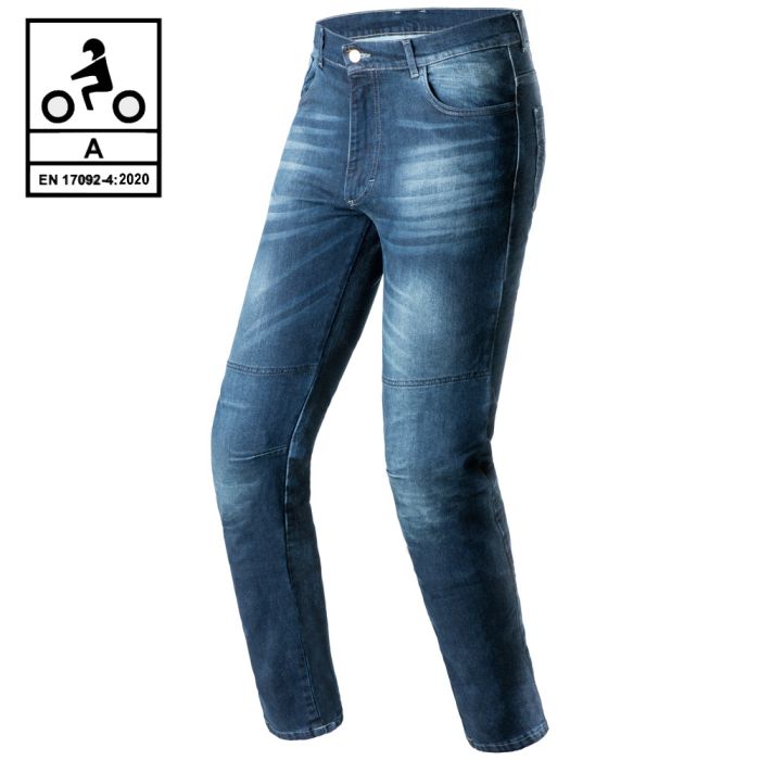 Linee semplici e lavaggio classico, per un jeans perfettamente in grado di farti sentire sempre a tuo agio in ogni contesto, ma soprattutto studiati e progettati per essere adeguatamente resistenti, protettivi e confortevoli durante i tuoi giri in moto. Dispongono di rinforzi in Cotone per un incremento della resistenza all’abrasione.